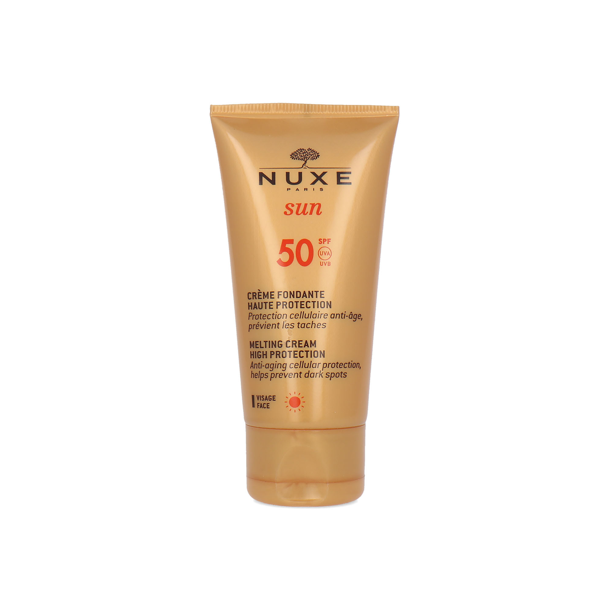 De Nuxe Sun Melting Cream For Face - 50 ml (SPF 50) beschermt je gezicht tegen tekenen van huidveroudering en beschadiging door de zon. De crème heeft een heerlijke geur en is speciaal gemaakt om aan te brengen op het gezicht.
