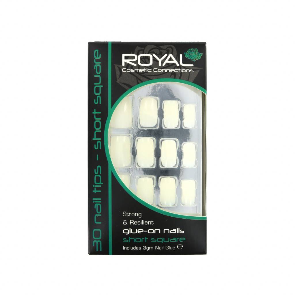 De Royal 30 Short Square Glue-On (met nagellijm) bevat 30 prachtige kunstnagels. Naast de prachtige kunstnagels is de set voorzien van een flesjes nagellijm, waar je de kunstnagels moeiteloos mee kan aanbrengen.