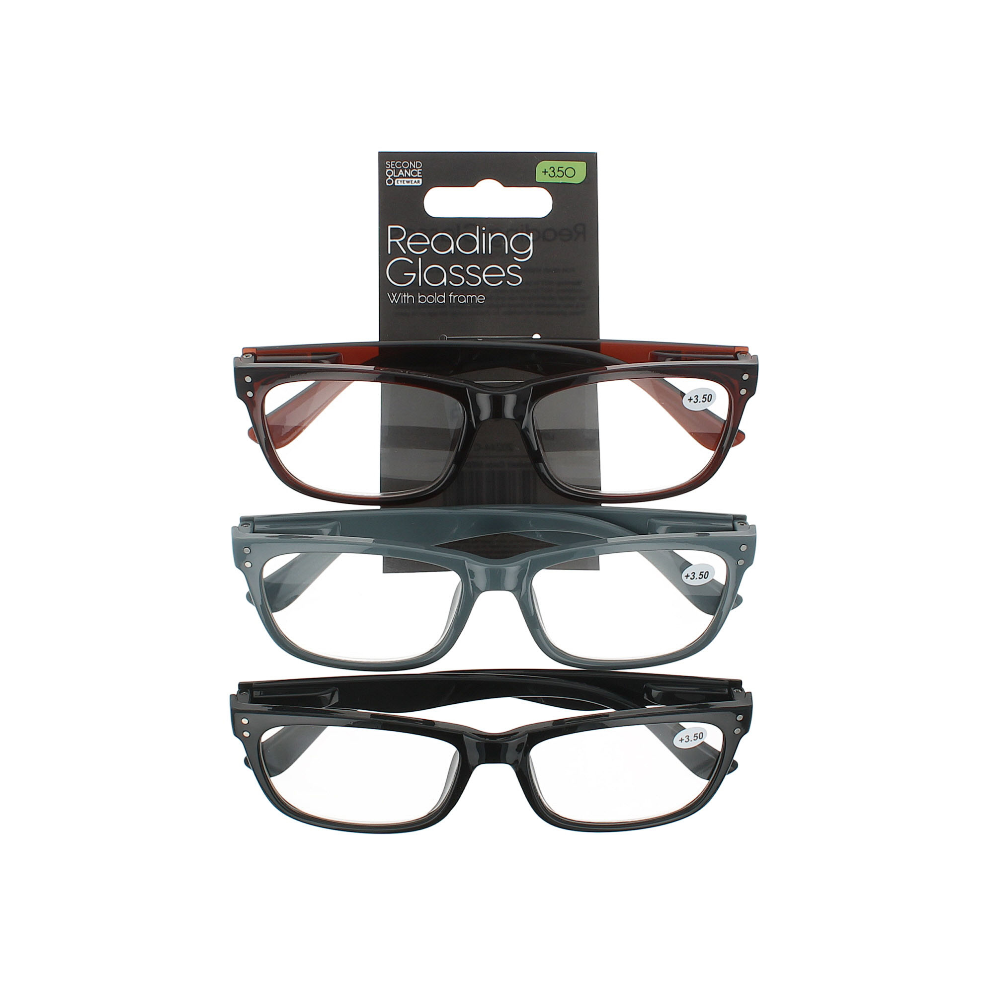 Second Glance 3 Pieces Bold Frame Reading Glasses + 3.50 online kopen bij Blisso. Voor meer informatie, neem contact op met onze klantenservice.
